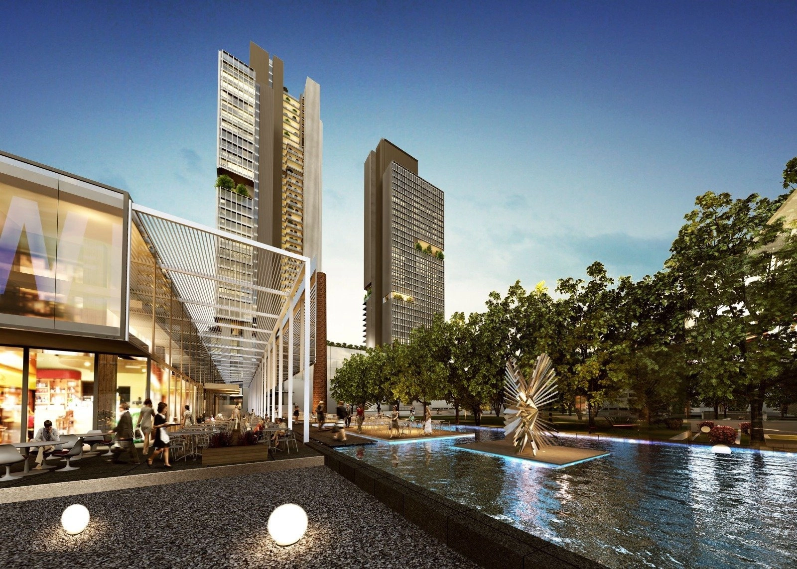 - Restaurants, cafés, and luxury retail